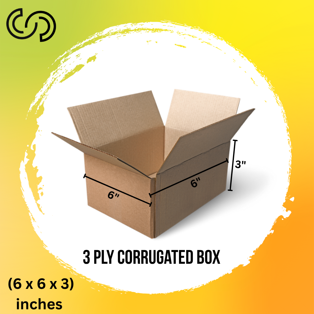 3 Ply Corrugated Box (6 x 6 x 3) Inches